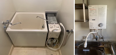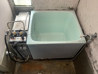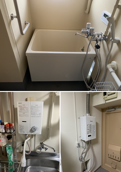 | FE式給湯器の設置です。 珍しく浴室内の柱の出っ張りがなく900サイズの浴槽を設置することが可能だったので変更しました。 浴室内にオプションの浴室リモコンも設置して浴室内からもお湯の温度が変えられるようになりました。 |