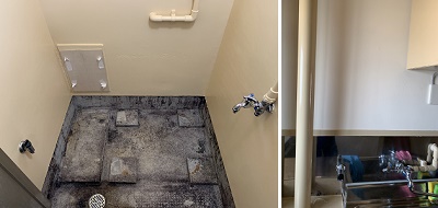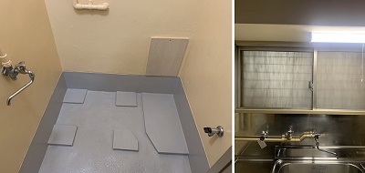| 平屋タイプの市営住宅の工事です。 単なる土間だったスペースが浴室になりました。 以前に住んでいた方の配管が残っていたのでコストをかけずに浴室復元ができました。 |