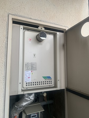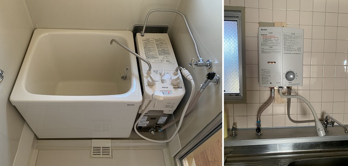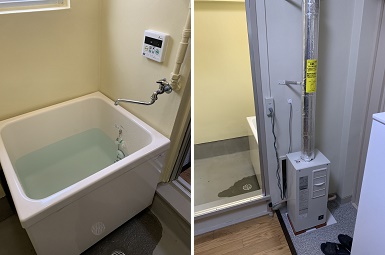 賃貸物件オーナー様からのご依頼です。室内にある電気温水器を撤去して屋外に給湯専用給湯器を設置する工事です。 |
