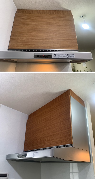| 以前にビルトインコンロ マイトーン をお買い上げいただいたお客様です。 工事履歴61-8 参照 今回はプロペラファンタイプのレンジフードからエコナビレンジフードへの取替です。 |