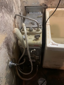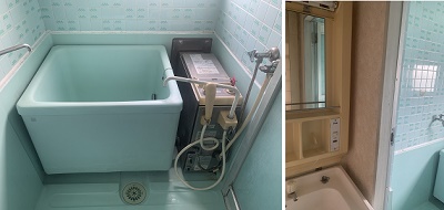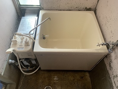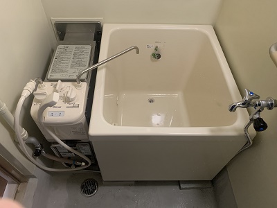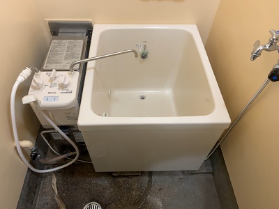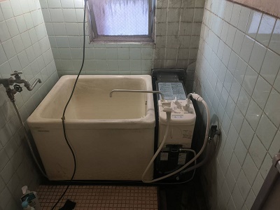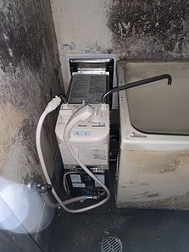 | FE式給湯器の設置です。 珍しく浴室内の柱の出っ張りがなく900サイズの浴槽を設置することが可能だったので変更しました。 浴室内にオプションの浴室リモコンも設置して浴室内からもお湯の温度が変えられるようになりました。 |