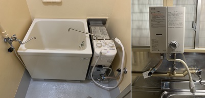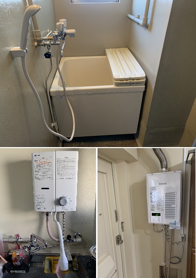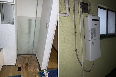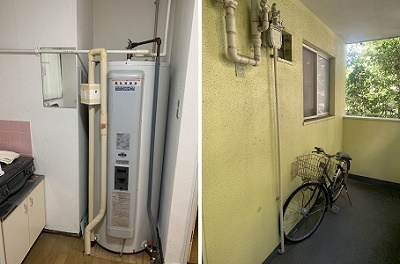 賃貸物件オーナー様からのご依頼です。室内にある電気温水器を撤去して屋外に給湯専用給湯器を設置する工事です。 |