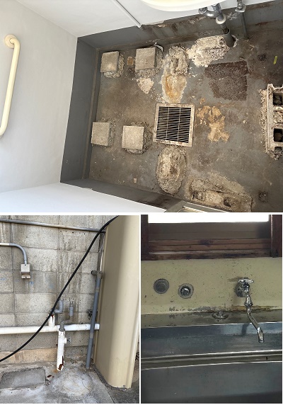 | 平屋タイプの市営住宅の工事です。 単なる土間だったスペースが浴室になりました。 以前に住んでいた方の配管が残っていたのでコストをかけずに浴室復元ができました。 |