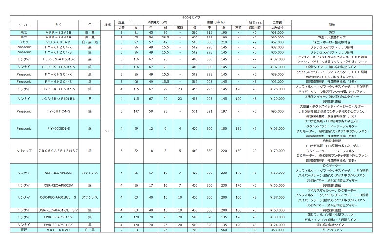 これで支払金額も判り設置するレンジフードが決まってきたのではないでしょうか?